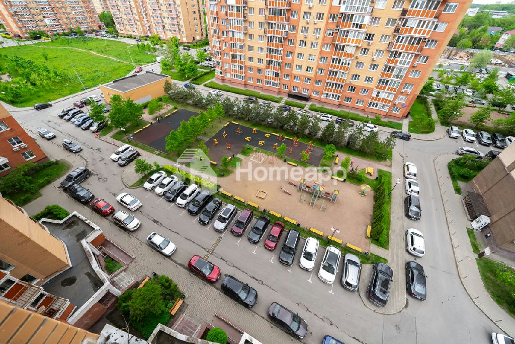 Открытая парковка. Во дворе детская и спортивная площадки. Детский сад примыкает к дому.