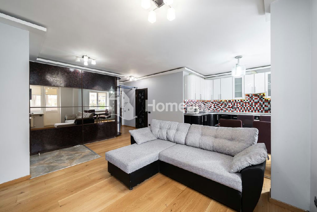 В квартире выполнена шумоизоляция пола и потолка, на полу уложена паркетная доска.
