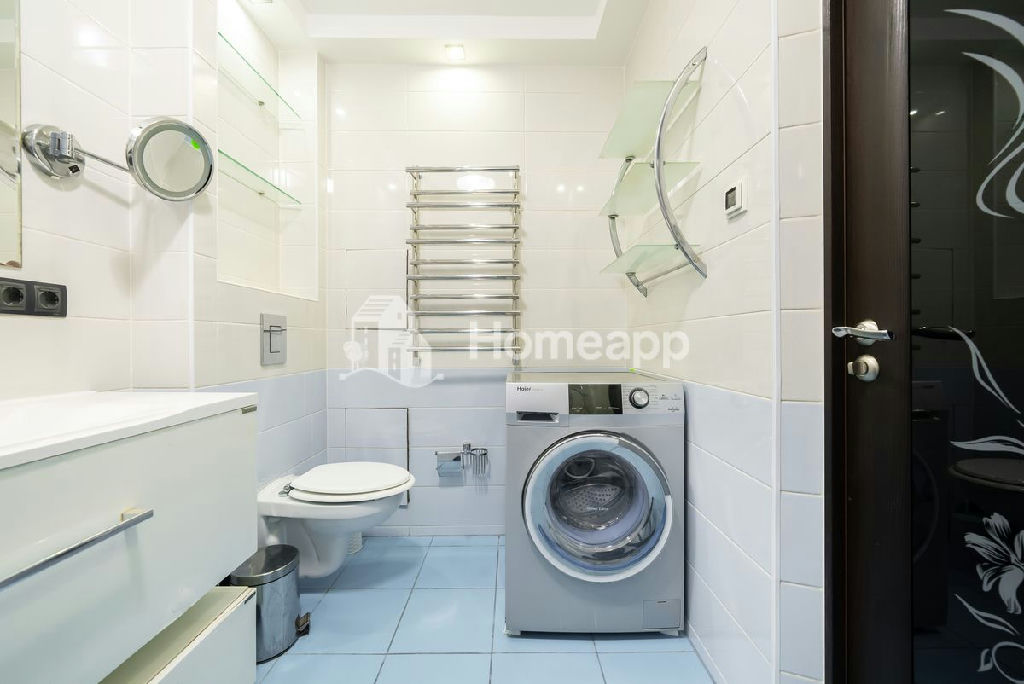 Санузел 6 м2 совмещённый, оборудован стиральной машиной Haier, гидромассажной ванной.